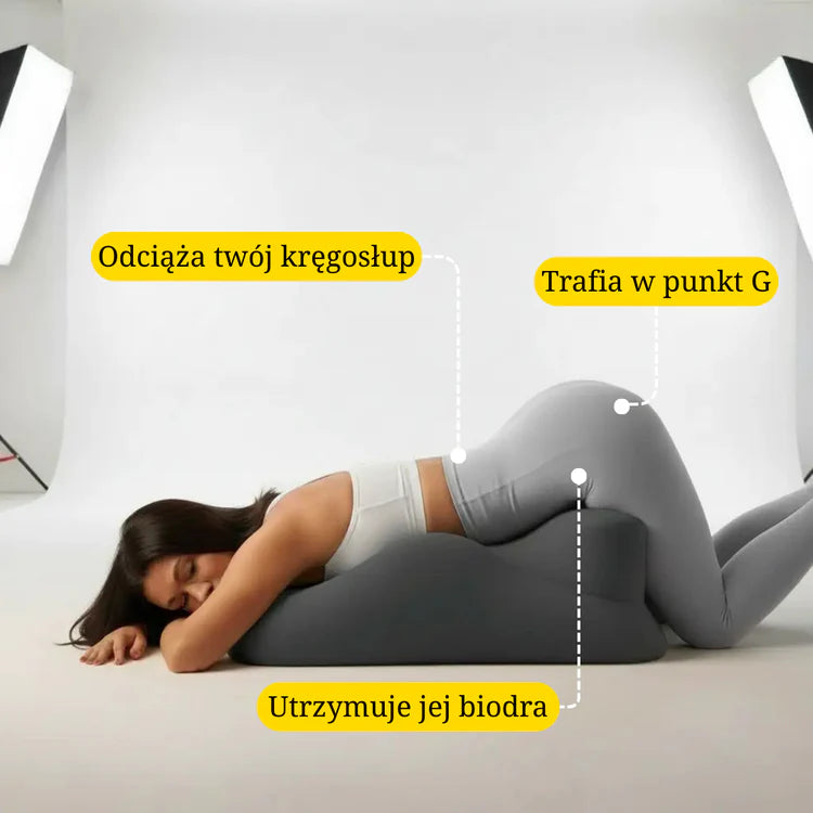 Połączyliśmy zaawansowaną ergonomię z pragnieniem głębszej relacji. Nasza poduszka to sekret dłuższych i bardziej urozmaiconych sesji, stworzona po to, by całkowicie wyeliminować dyskomfort.